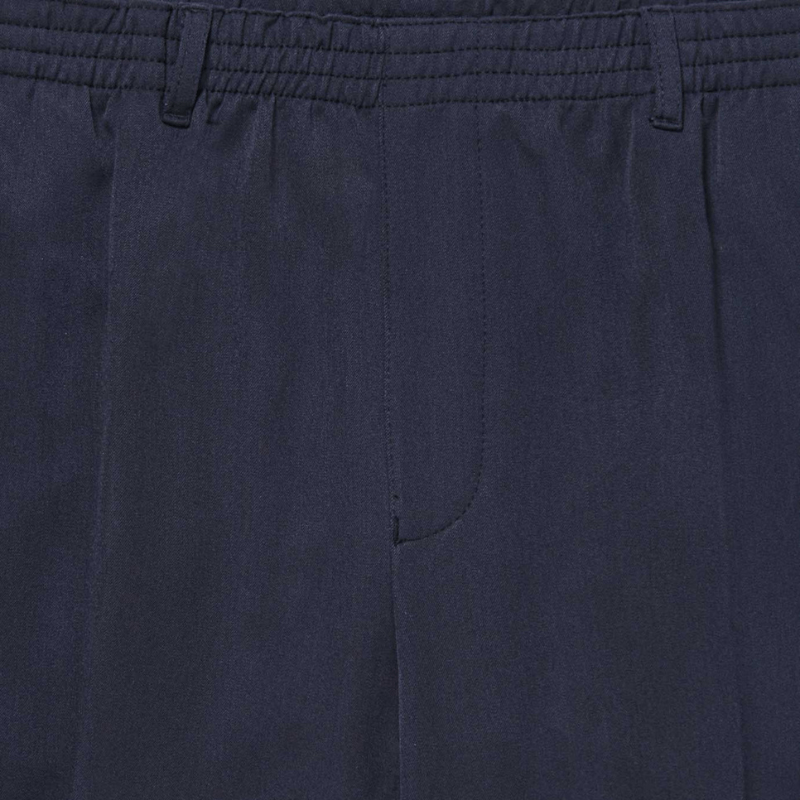 Den mjuka resårkanten runt hela midjan ger en behaglig passform som följer kroppens rörelser utan att strama. Byxorna har ett pressveck framtill som ger ett snyggt och klassiskt uttryck, och de kan enkelt användas både till vardags och vid finare tillfällen.