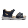 Den här sandalen från New Feet är tillverkad i blått kalvskinn och designad med en halvöppen hälkappa för extra andningsförmåga.