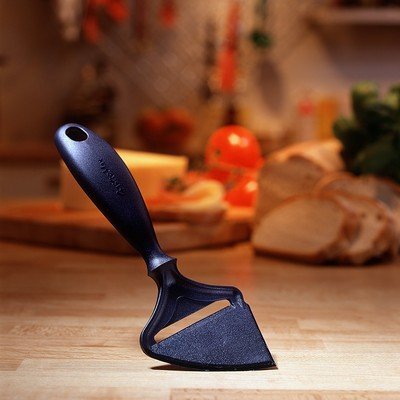 Grå osthyvel med non-stick-yta som även kan användas som ostkniv.