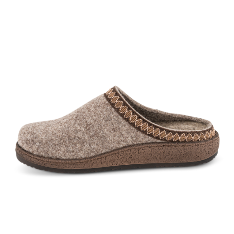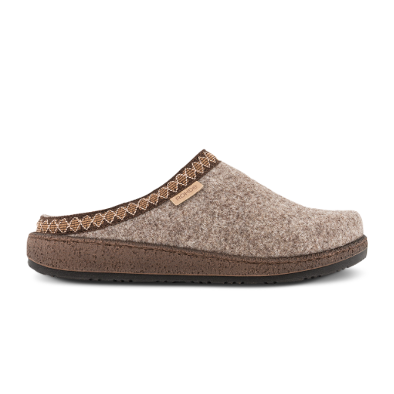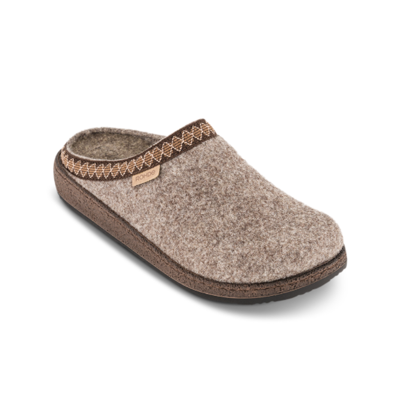 Bekväm ljusbrun Rohde-hemtoffel i mjukt filt som håller fötterna varma hela dagen.
