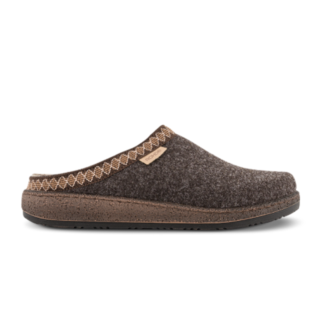 Bekväma, bruna Rohde-damtofflor i mjuk filt som håller fötterna varma hela dagen.