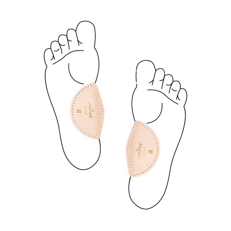 Inlägget avlastar och stödjer hålfötterna när du står eller promenerar. De är självhäftande med en ovansida av läder, och du placerar dem enkelt i dina skor.