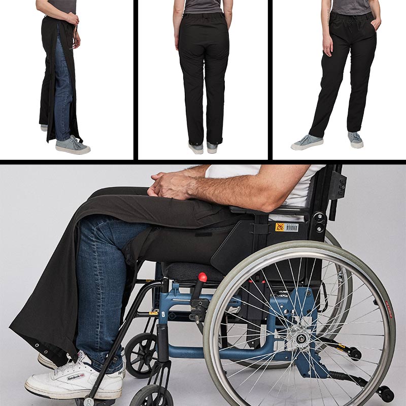 Lätta och vattentäta svarta byxor med dragkedjor i sidorna från Dobsom – perfekta för att underlätta vardagen för personer med begränsad rörlighet, oavsett väder! Med både resår och snöre i midjan är passformen lätt att justera, vilket gör att byxorna passar de flesta kroppstyper.