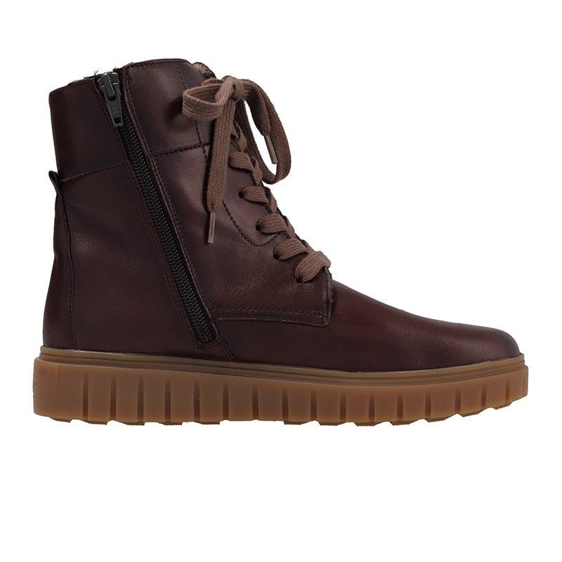 Kängan är tillverkad av mjukt läder av hög kvalitet, vilket ger stöveln en bekväm passform och bra flexibilitet. Denna modell är utrustad med både dragkedja på sidan och skosnören, vilket gör att den är enkel att ta av och på samt anpassa efter foten.