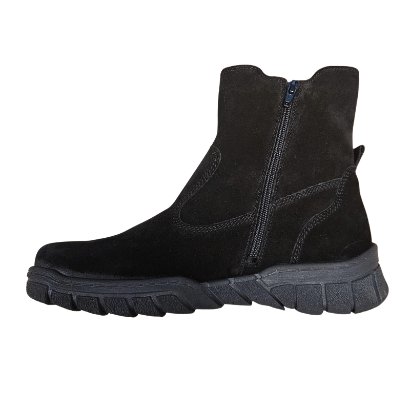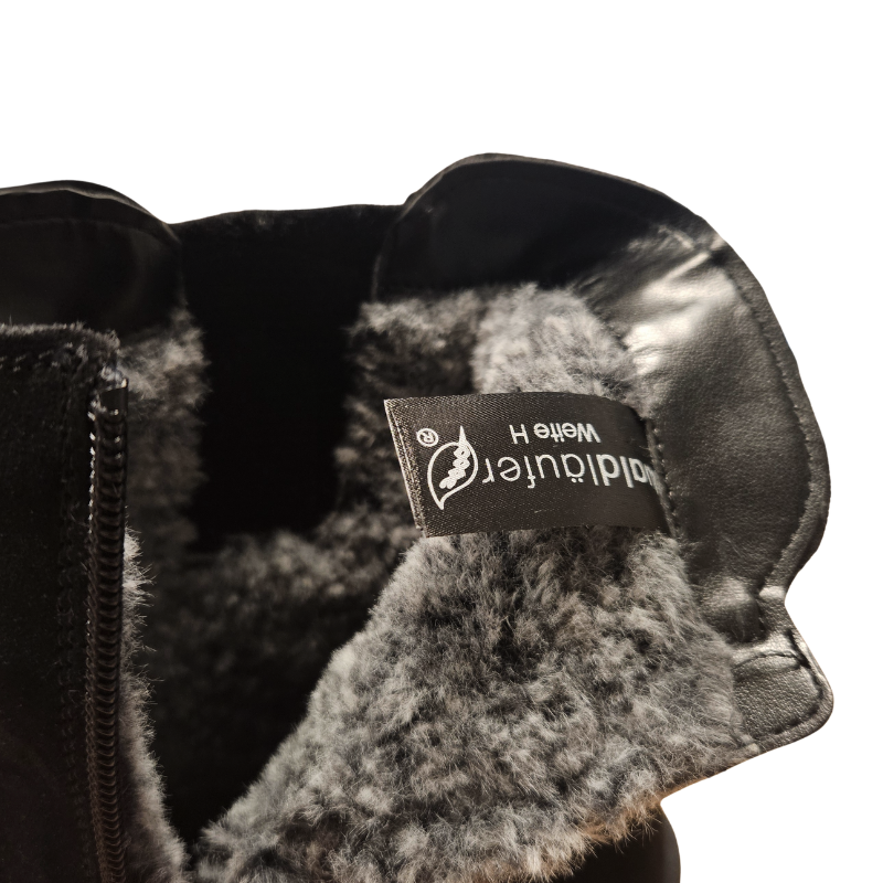 Elegant svart vinterkänga från Waldläufer i mjuk mocka med en mycket mjuk och varm fodring som ger hög komfort – även under kalla dagar. Kängan har en dragkedja på insidan som gör den enkel att ta av och på.